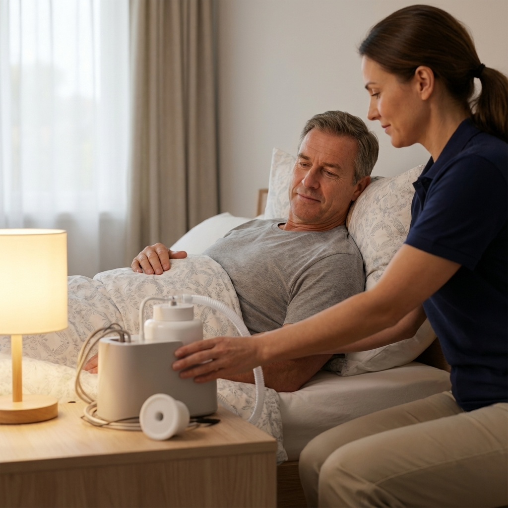 A safe, hygienic, and easy-to-use urine collection device designed to support comfort and dignity for users with limited mobility. Available in both male and female versions.